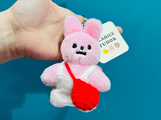 Pink rabbit RED bag plushie keyring - comes with stickers!