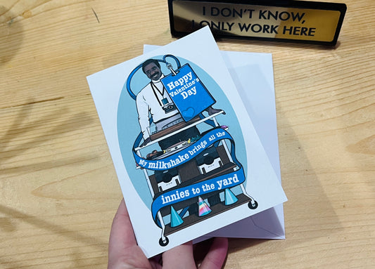 Severance inspired Valentine’s Day card - 'my Milkshake brings all the Innies to the yard’