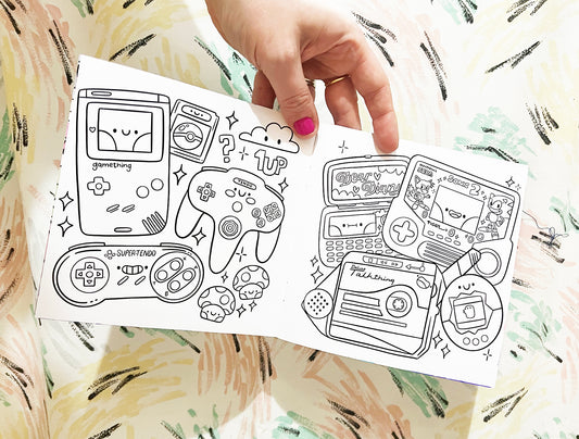 90's Nostalgia Colouring Book with free sticker sheet!