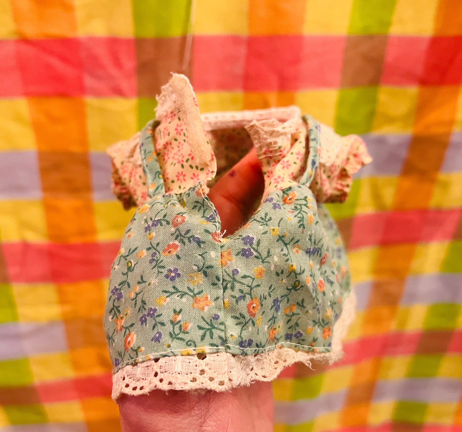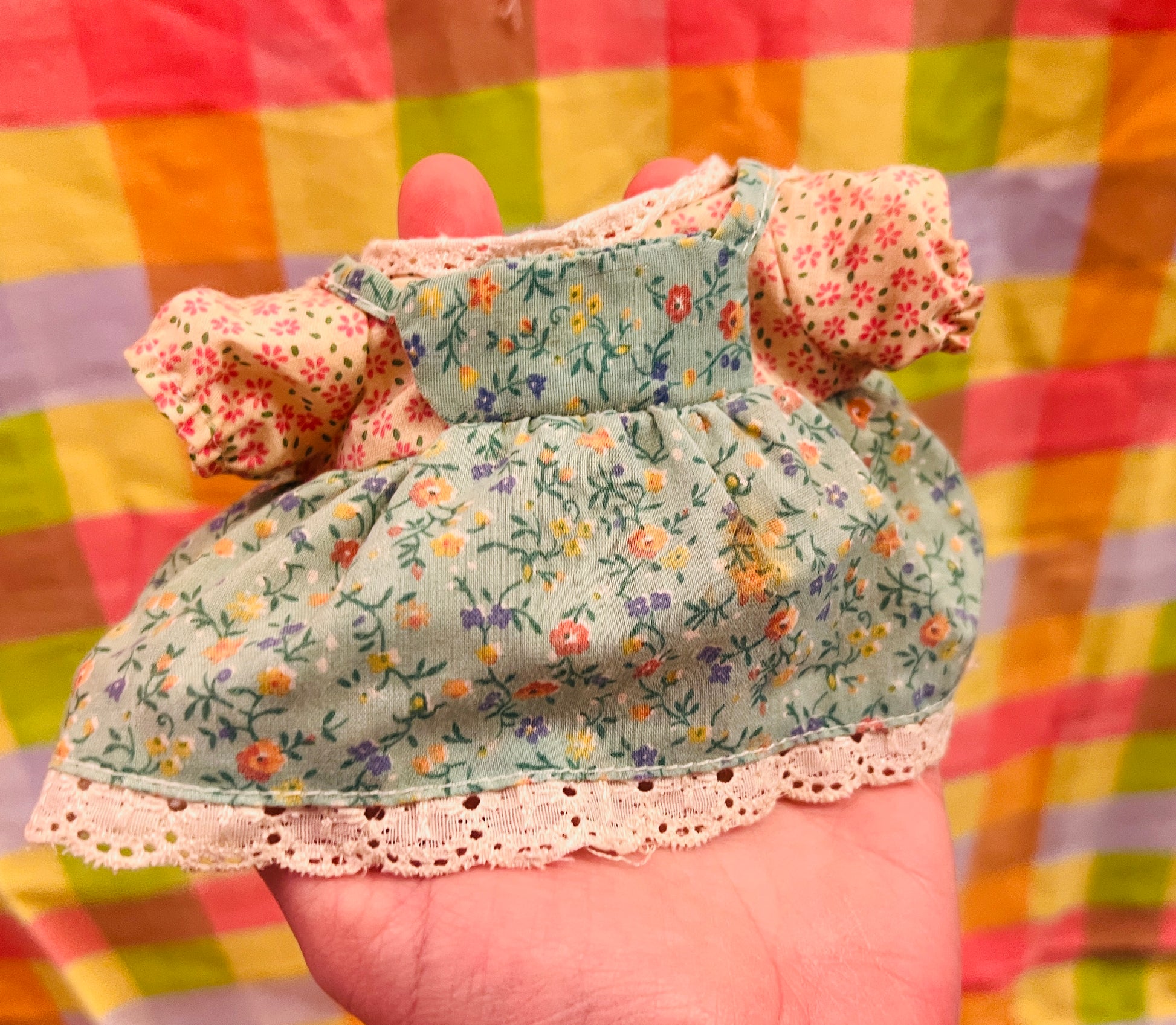 Dress is missing its Sylvanian Families logo and has a few stains in places.