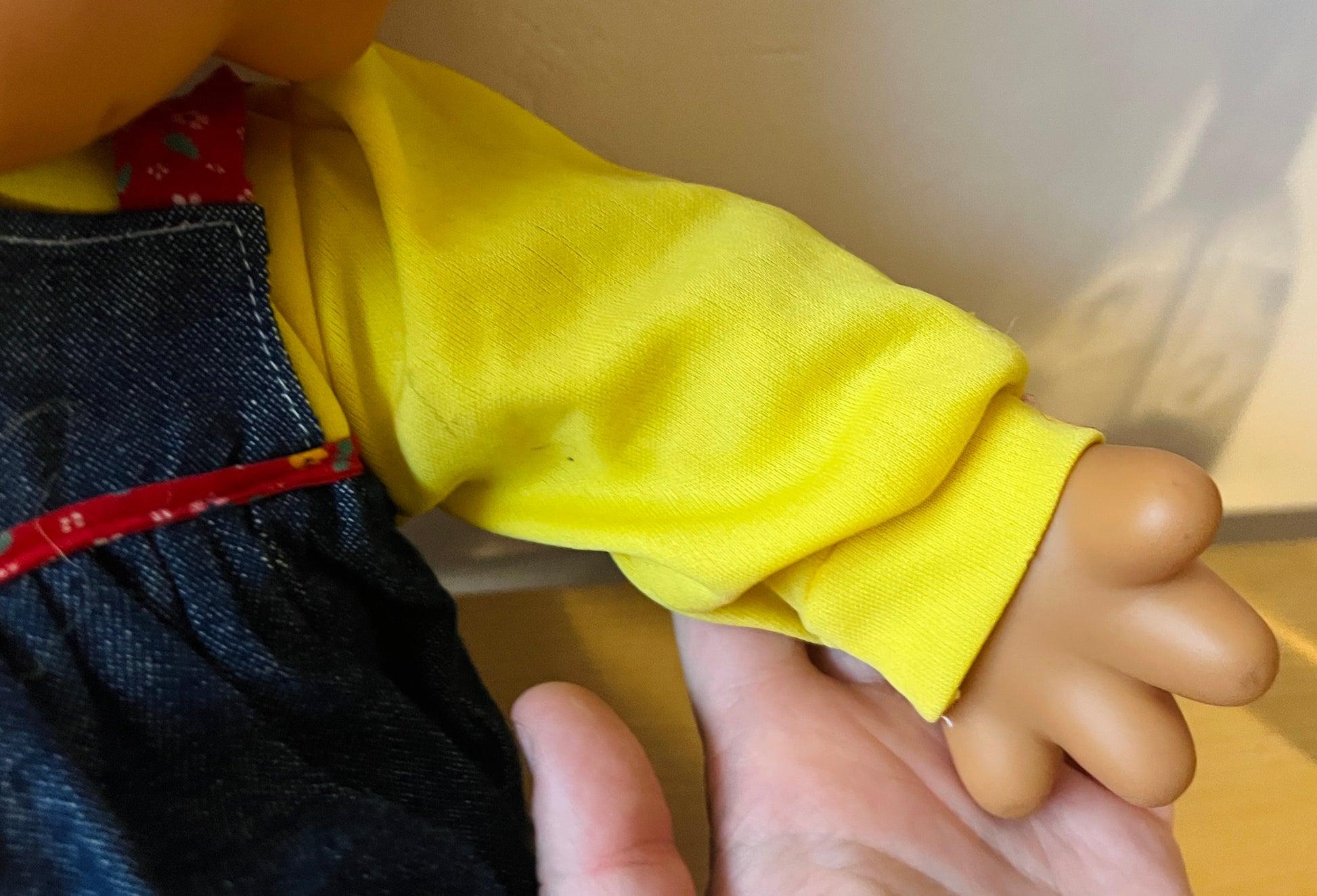 In good condition, no marks on face or clothes! Hair bow slightly loose, red hanky on clothes slightly loose at bottom. A great doll to have as part of your Troll collection!