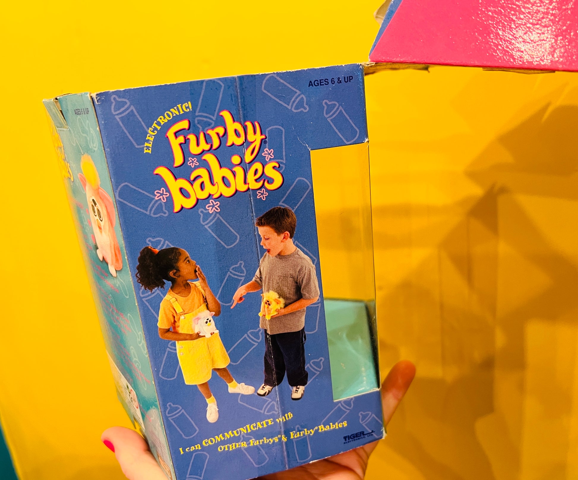This Furby is still in working order, with voice and interactions! Eyelashes still intact which is rare. Still has original paper tag and plastic tag too! (Slightly creased, see pics)