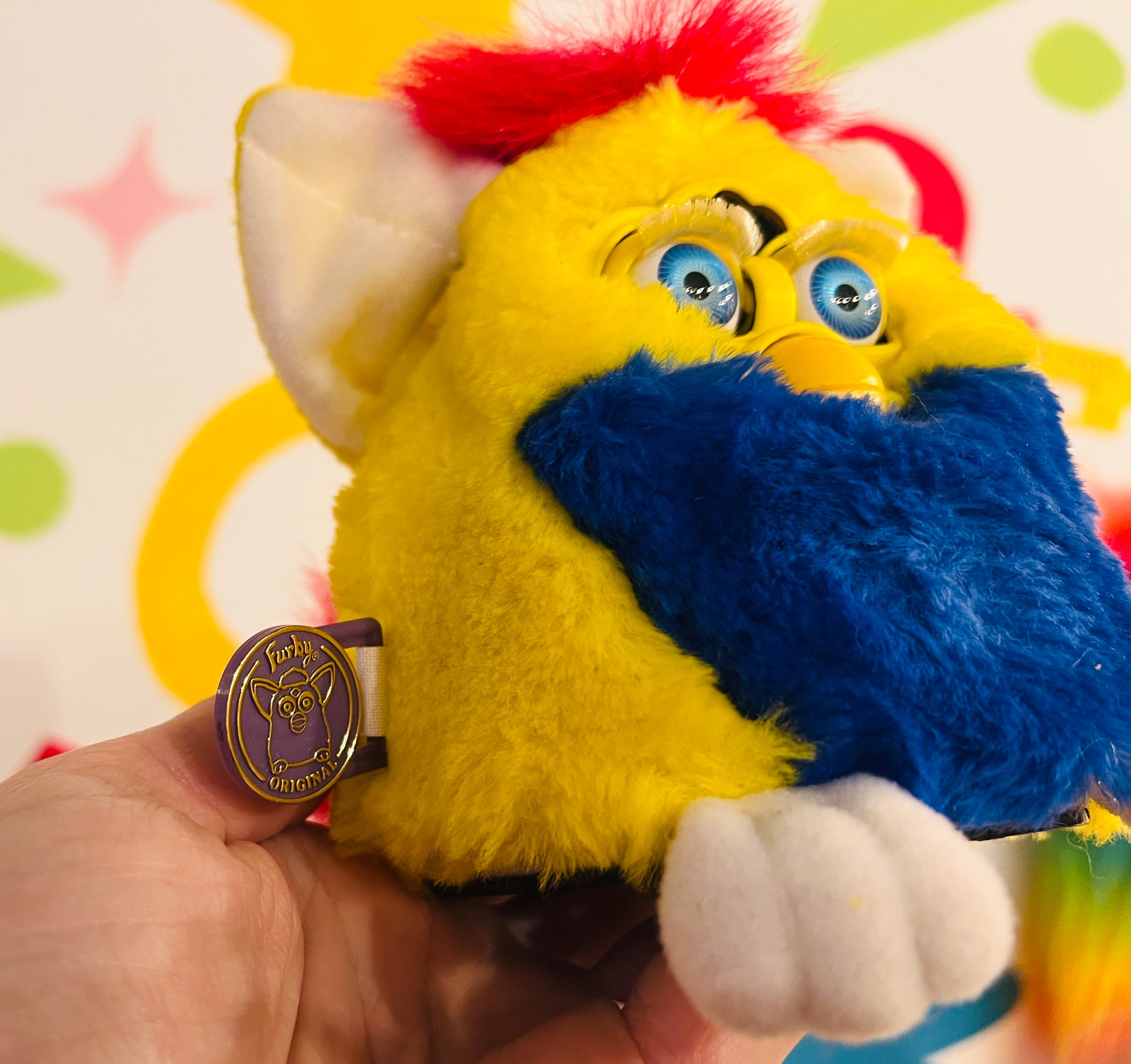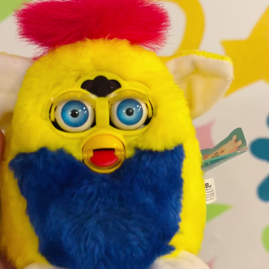 This Furby is still in working order, with voice and interactions! Eyelashes still intact which is rare. Still has original paper tag and plastic tag too! (Slightly creased, see pics)