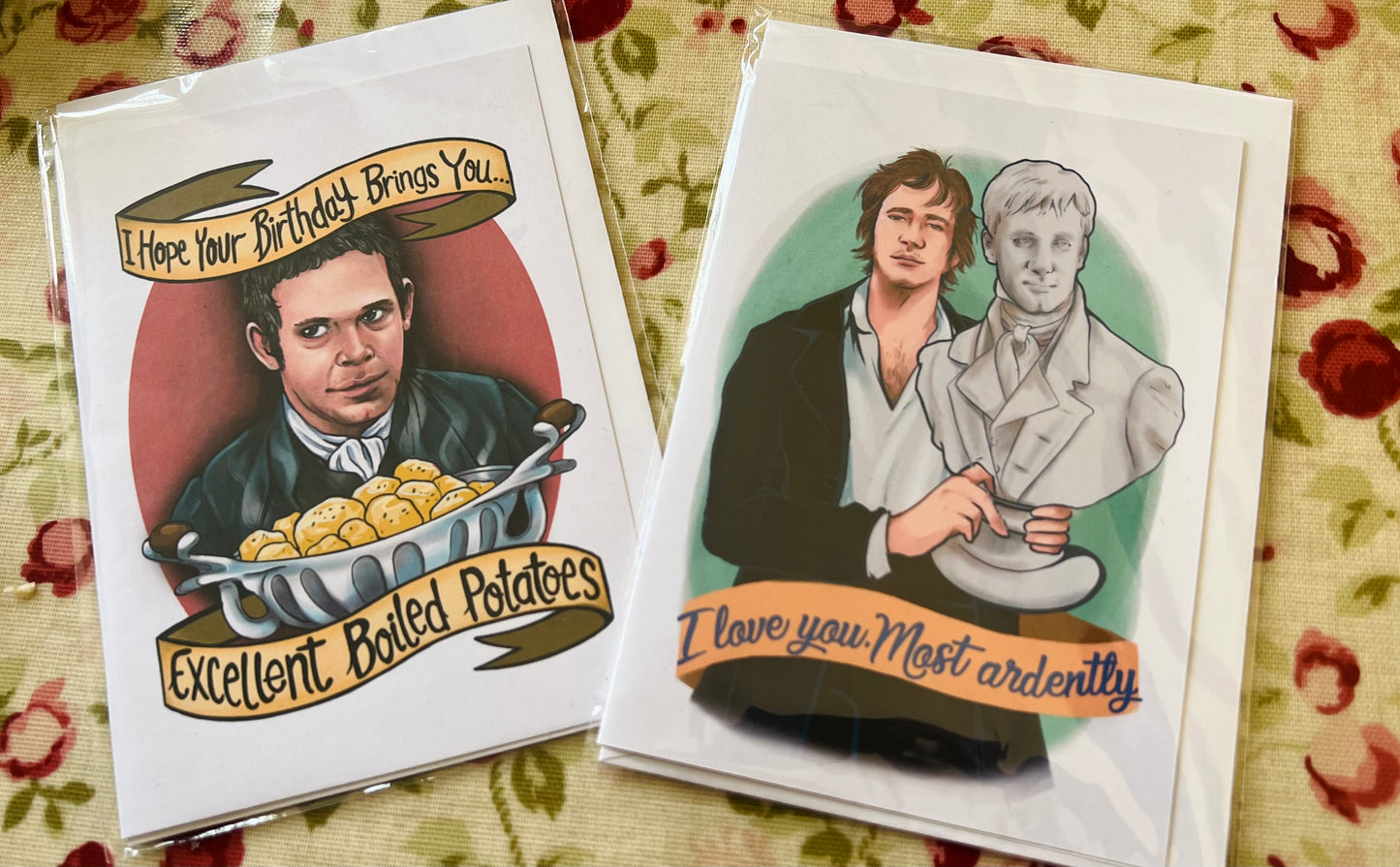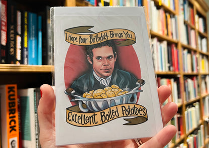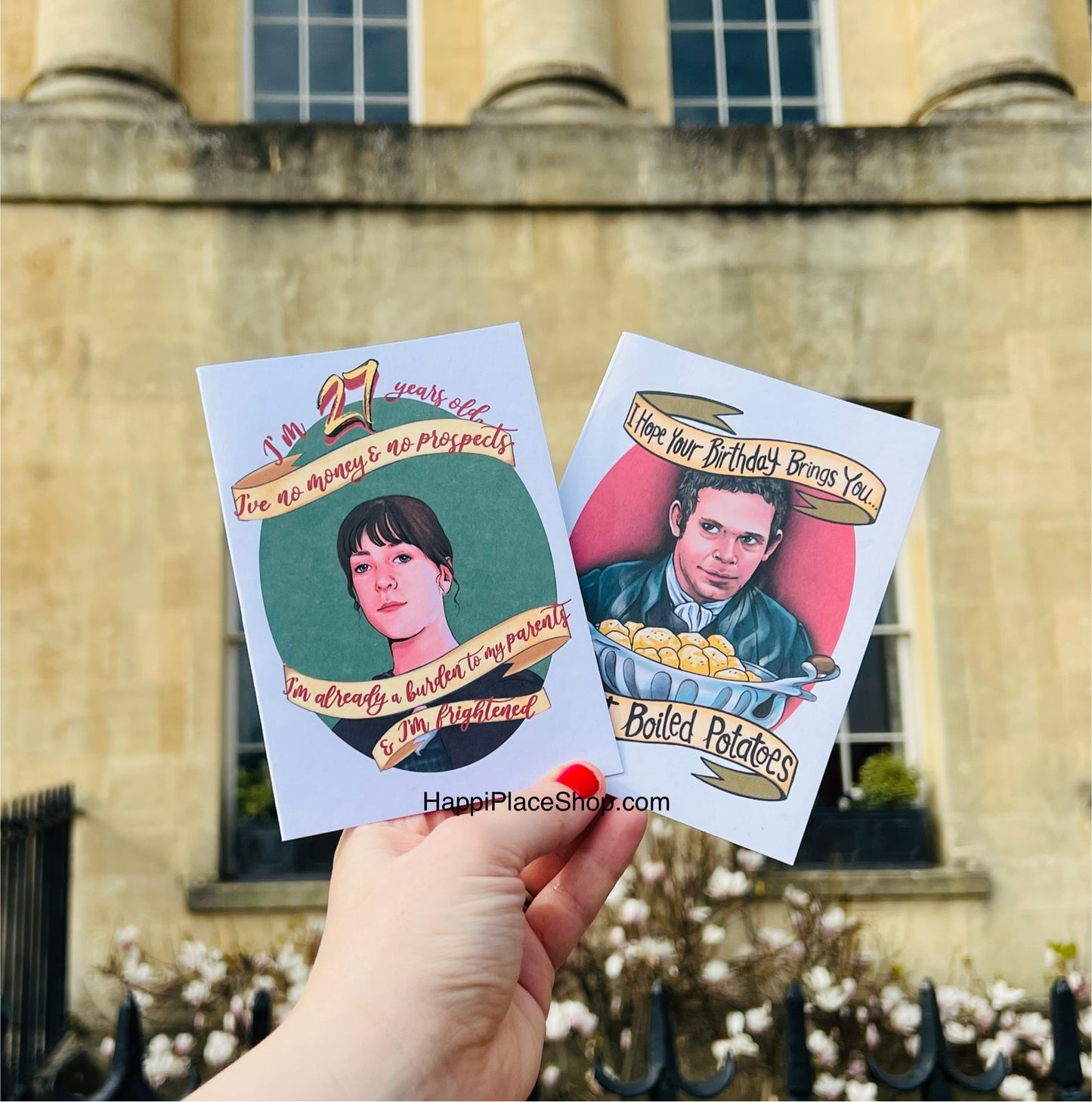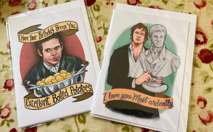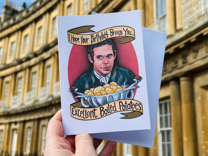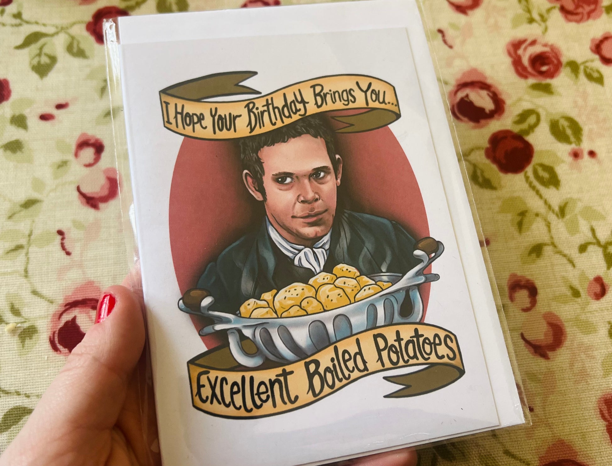 Check out this Pride & Prejudice Mr Collins inspired Birthday card! Perfect for any Pride & Prejudice 2005 addict, this card features Mr Collins well known potato quote