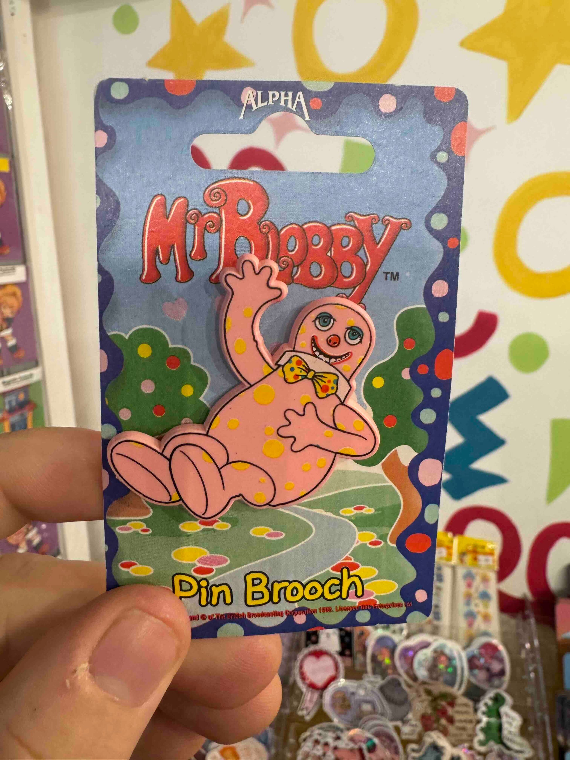 This vintage item depicts Mr Blobby falling over. Perfect to wear or for your own collection!