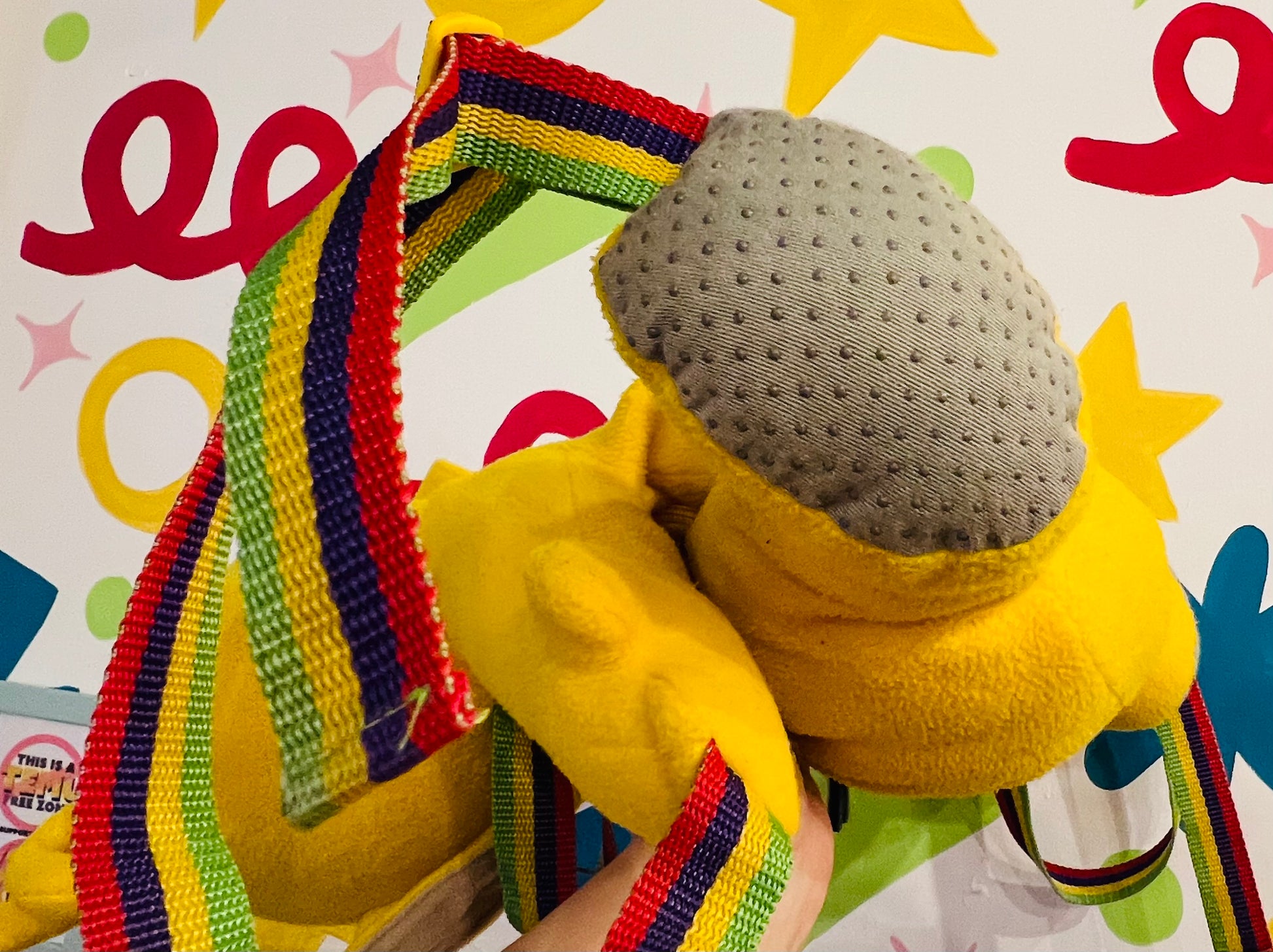 Original Lala Teletubbies backpack from the 90’s! Comfortable and great space inside. So so so soft!!! In good condition, a few marks on the face, and one strap has slightly frayed away (see pics for reference). Also previous owners name has been written on the inside).