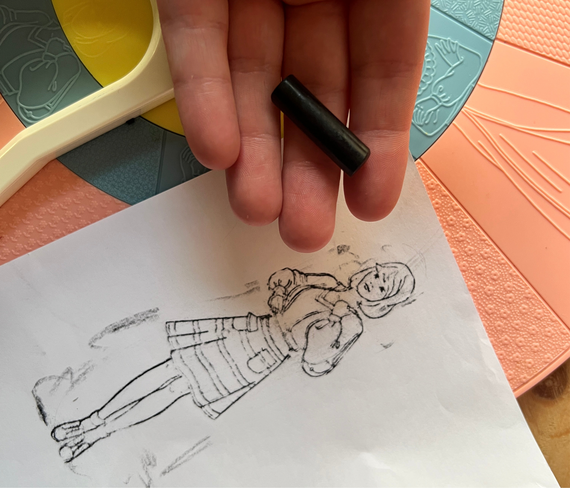 Missing original crayon holder but does have a wax crayon to create your designs with! Create lots of diffrerent designs. Make zines, scrapbooks and fun art!