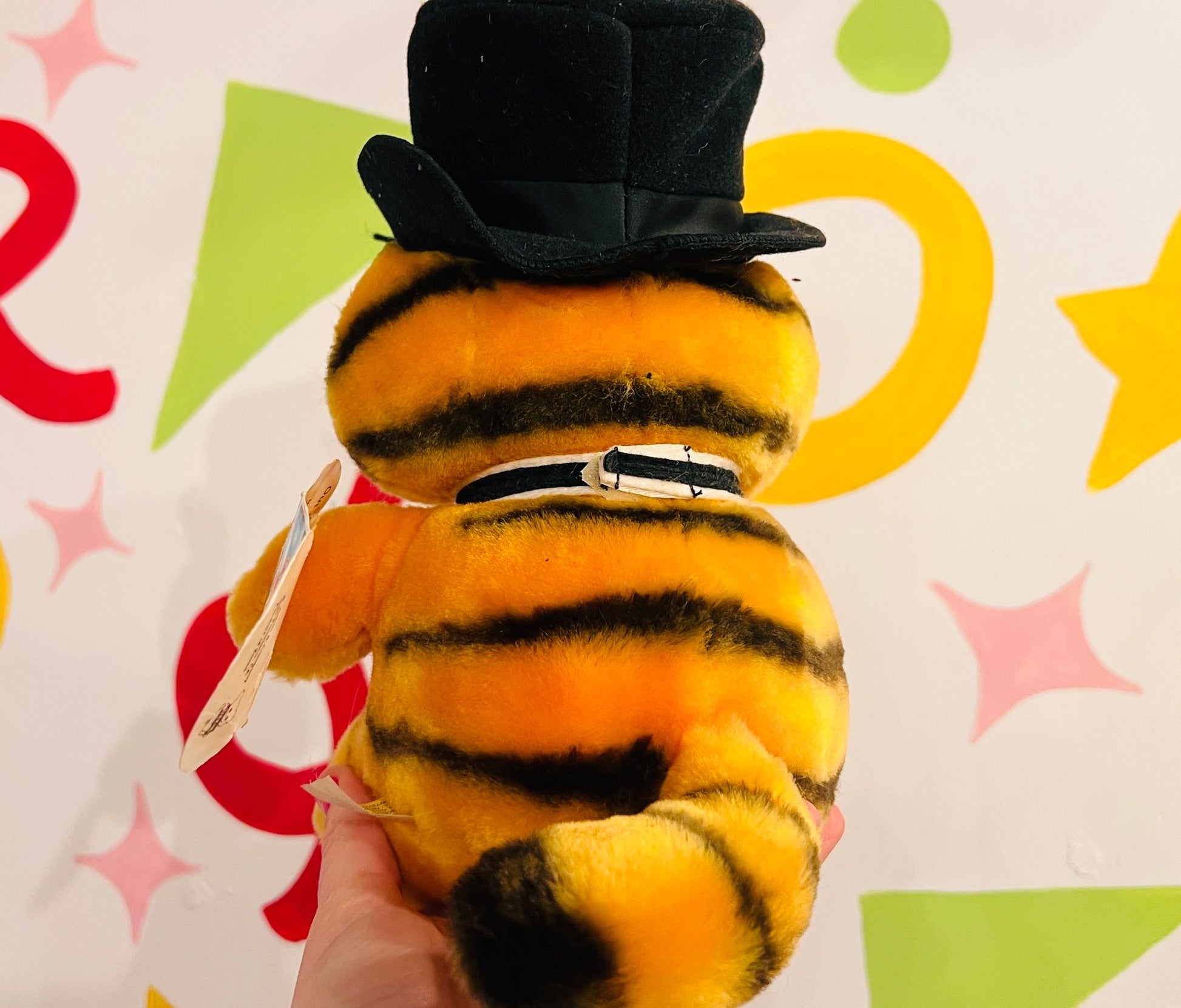Comes with original bow tie and hat. Plush is in amazing condition, no stains or sun damage. still has original tag - tag has creases, please see pics