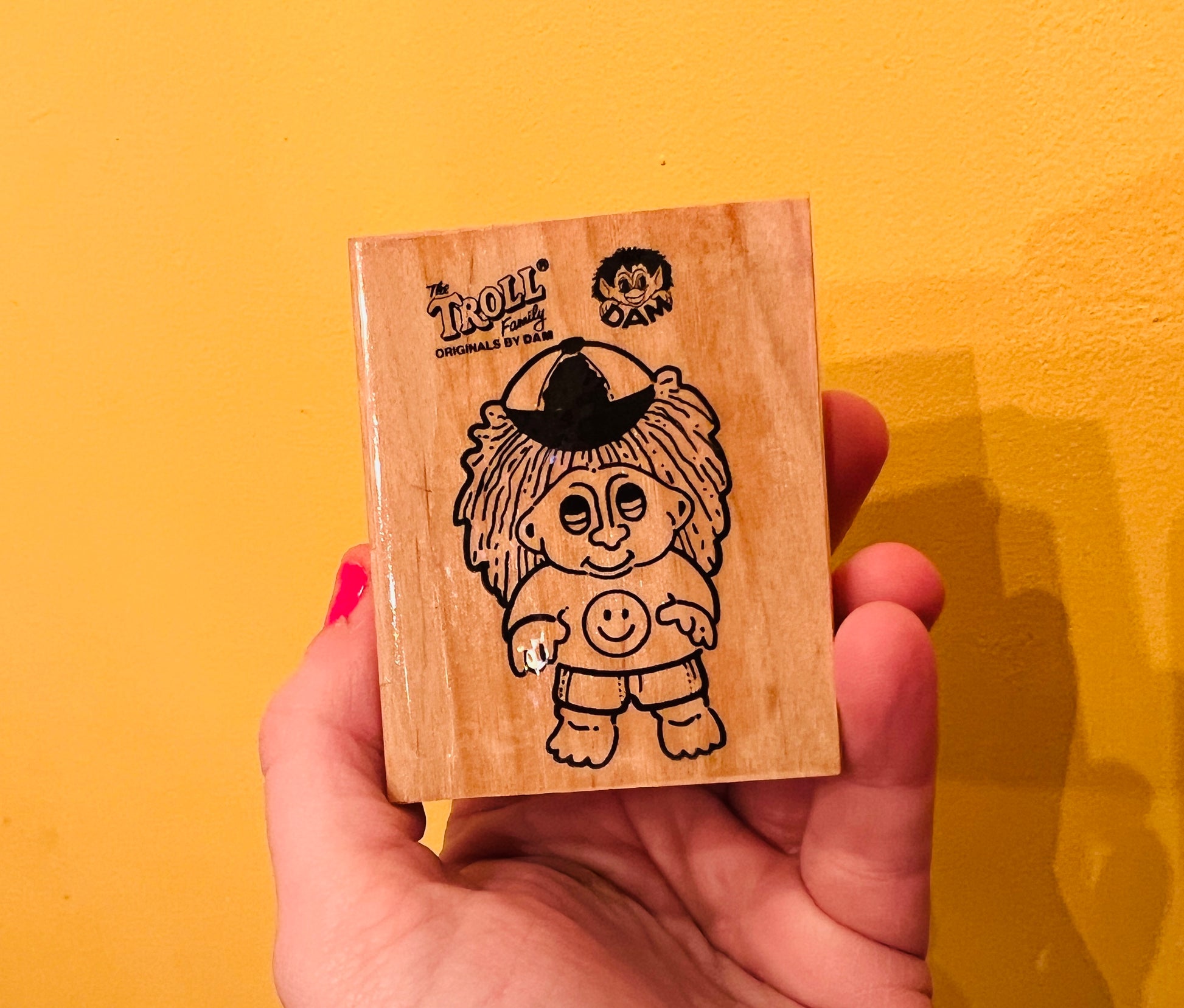 Simply press down on a stamp pad to transfer ink. Works best on plain paper